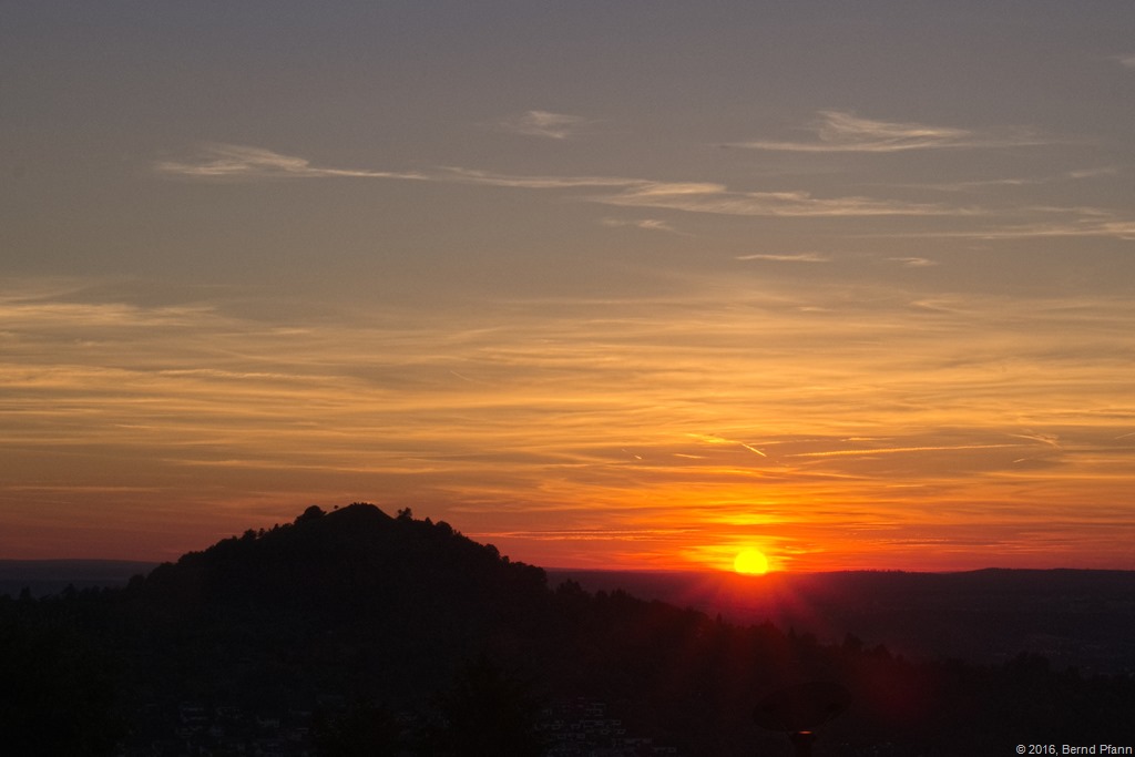 Es geht aber auch einfacher, was zumindest Sonnenuntergänge angeht. Knapp am Rande der Alb steht das Waldcafe in Pfullingen mit dem Fritz. Gefühlt einer der schönsten Aussichtspunkte der Region und damit auch geeignet die Kamera mit zu nehmen und falls das Wetter mitspielt den einen oder anderen Sonnenuntergang von dort oben ein zu fangen. Als Motiv im Vordergrund haben wir hier den Georgenberg oder die Reith (abhängig zu welcher Jahreszeit wir fotografieren wollen). Die Tatsache, dass kulinarische Köstlichkeiten in sprichwörtlich greifbarer Nähe sind, erleichtert das Fotografieren ungemein.