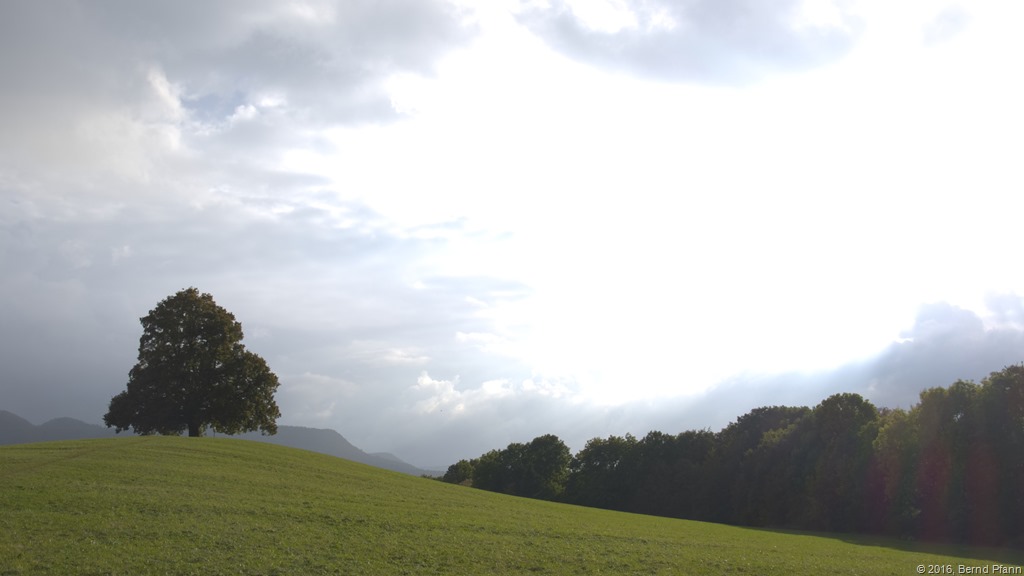 Gefällt Euch das Bild (lassen wir mal das Thema Bäume außeracht)? Vielleicht ja, das Problem hier ist, dass die Sonne auf der rechten Seite in den Wolken ausgefressen wirkt. Dazu hat das Auge die Eigenschaft, sich an den hellen Bereichen in einem Bild zu orientieren. Sprich, unser Blick wandert vom Baum der das Hauptmotiv ist, zum hellen und ausgefressenen Sonnenfleck auf der rechten Seite.