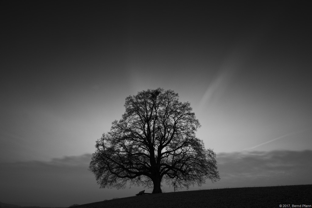 … oder ich konnte es nicht lassen. Um ehrlich zu sein, fahre ich gerne dort hin. Bei mir findet Fotografie häufig spontan statt, dabei tut sich ein unverhofftes Zeit-Fenster auf und ich nutze die Gelegenheit. Lange Anfahrtswege sind da kontraproduktiv und so führt mich der Weg immer wieder nach Bronnweiler zur Friedenslinde, zumal das Wetter sagen wir mal grenzwertig war.