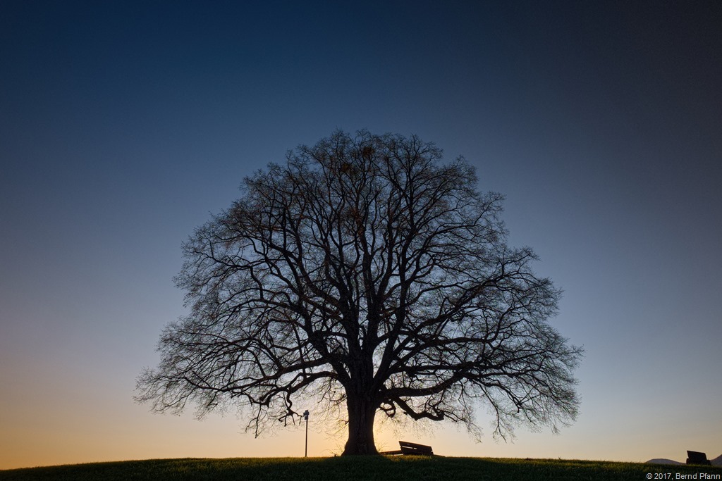 Nachdem Anfang April das Wetter fast schon sommerlich wurde, habe ich die Chance genutzt die Linde in Bronnweiler zwei mal zu fotografieren, einmal am Abend und dazu einmal am Morgen. Das Setup dazu war fast gleich. Kamera auf Stativ, dazu einen ND 3.0 und einen ND 0.9 Verlauf-Filter um eine hinreichend lange Verschlusszeit zu bekommen.