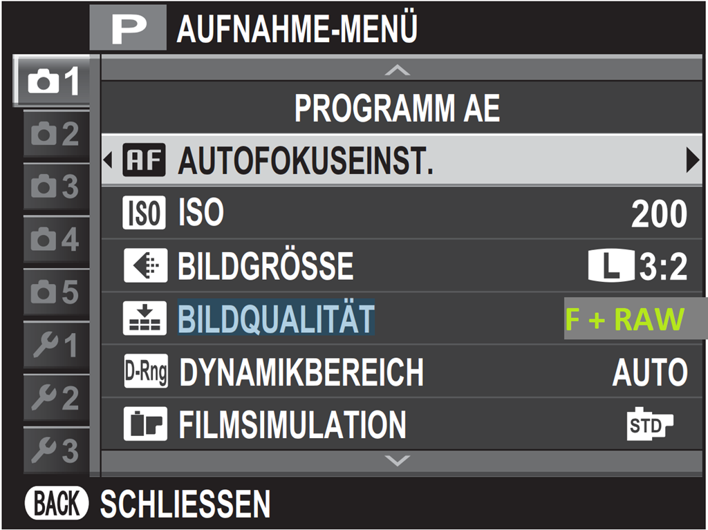 • Du musst aus dem Motivprogramm wieder raus gehen, dann geht das. Also das DRIVE Rad auf S, CL oder CH stellen mit den Motivprogrammen oder Panorama kann die X-T10 keine RAWs aufnehmen und deaktiviert daher die Option auch im Menü.