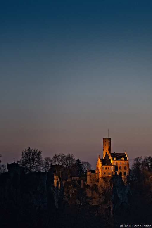 Nach geduldigem Warten war die Sonne dann auch untergegangen und der Lichtenstein wurde angestrahlt.