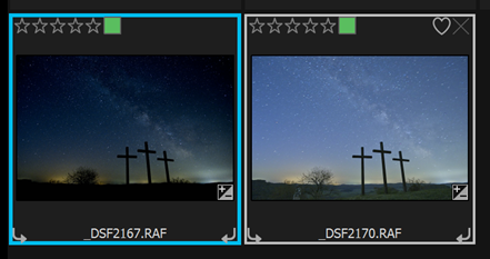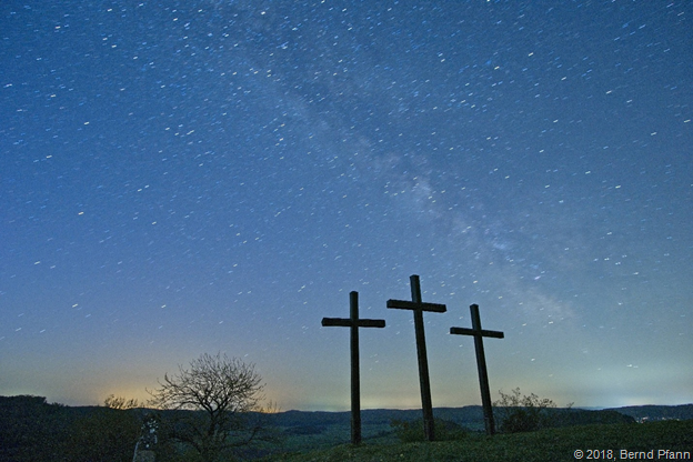 Bevor nun die beiden Bilder überlagert werden, erfolgt eine getrennte Bearbeitung, jeweils mit dem Augenmerk auf den Bildbereich welcher hinterher für das Ergebnis wichtig ist. Das ist im ersten Bild die Milchstraße und im zweiten Bild die Kreuze als Vordergrund.