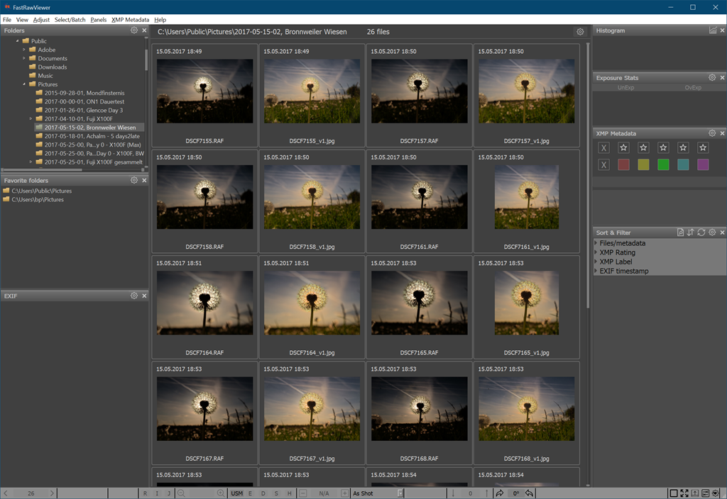 Die Anzeige erfolgt hier ausschließlich in der Anwendung selbst. Greift man hingegen auf den RAW File Converter EX von Fujifilm zurück, hat man einen RAW Konverter und die Unterstützung der Fuji RAWs im Windows Explorer.