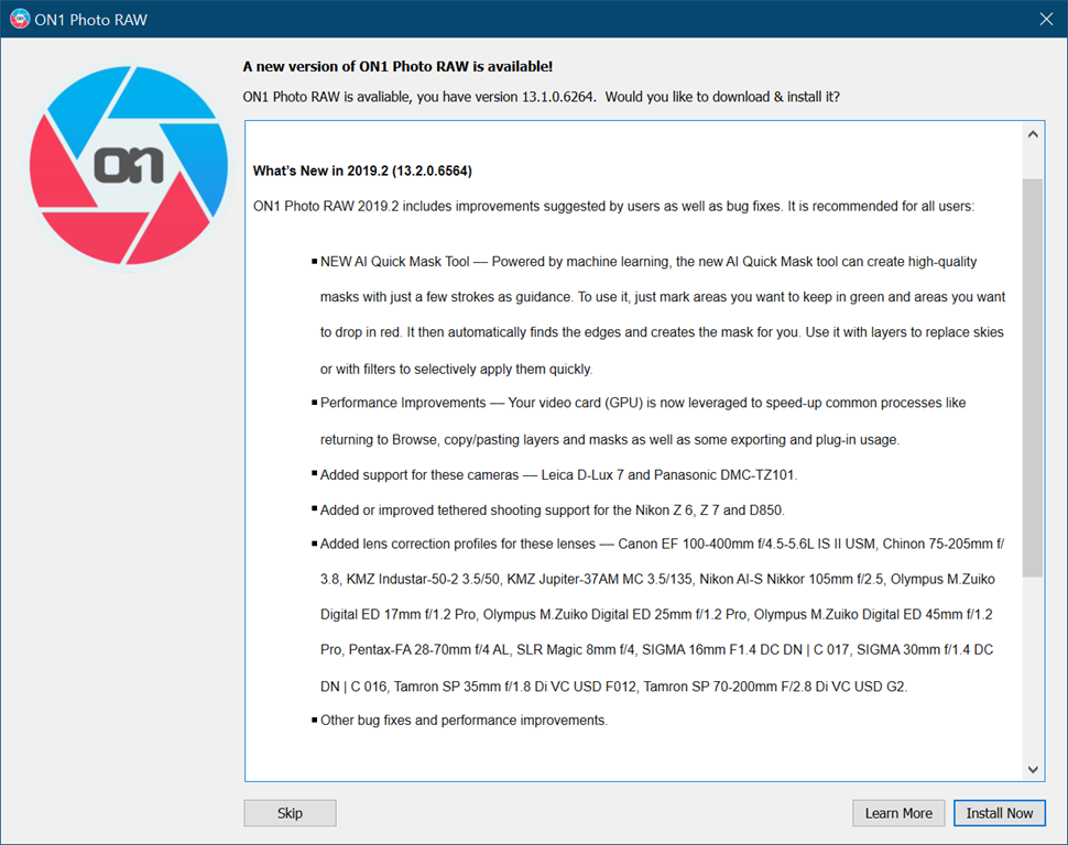Seit heute Nacht ist ON1 Photo RAW 2019.2 als Update verfügbar. Alle die ON1 Photo RAW neu erwerben, bekommen automatisch die aktuelle 2019.2 Version.