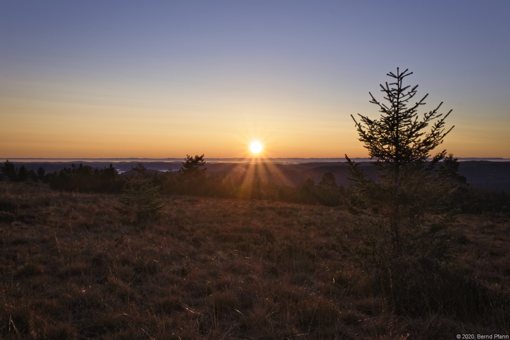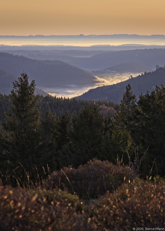 Kurz nachdem die Sonne über den Horizont gestiegen war, konnte man noch die Nebel der vergangenen Nacht in den Tälern sehen.