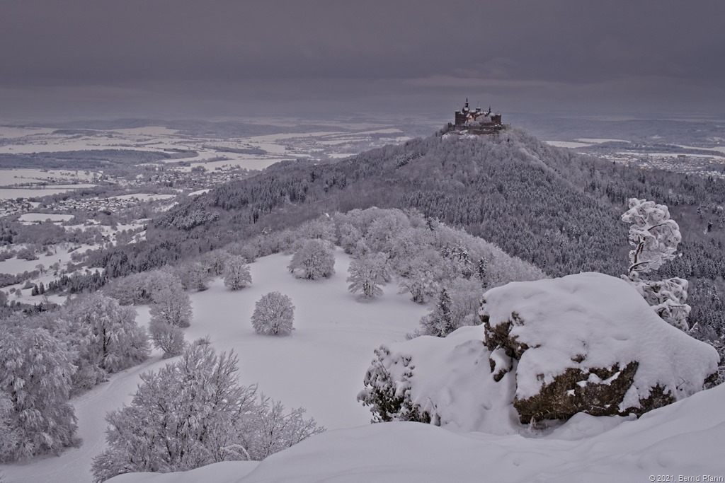 Wenn es bei uns schneit, dann wacht auch die Burg Hohenzollern im Winterkleid über die Schwäbische Alb.