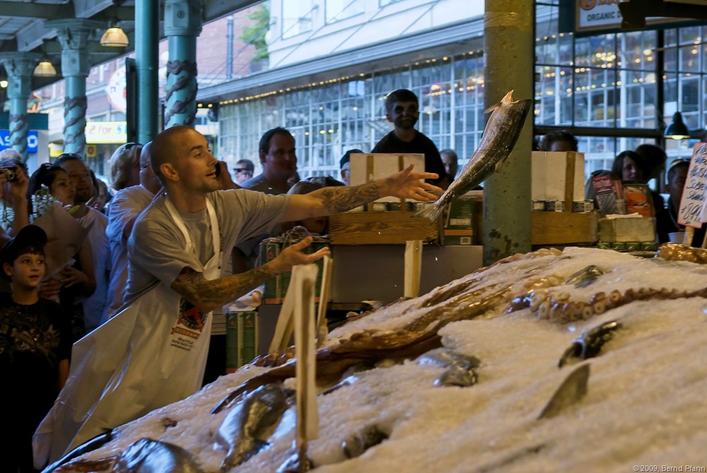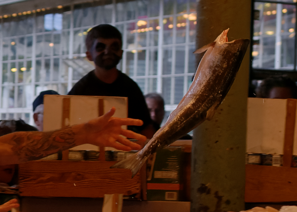 Hier ein Ausschnitt des ziemlich scharfen, Flying Fish im Pike Place Market …