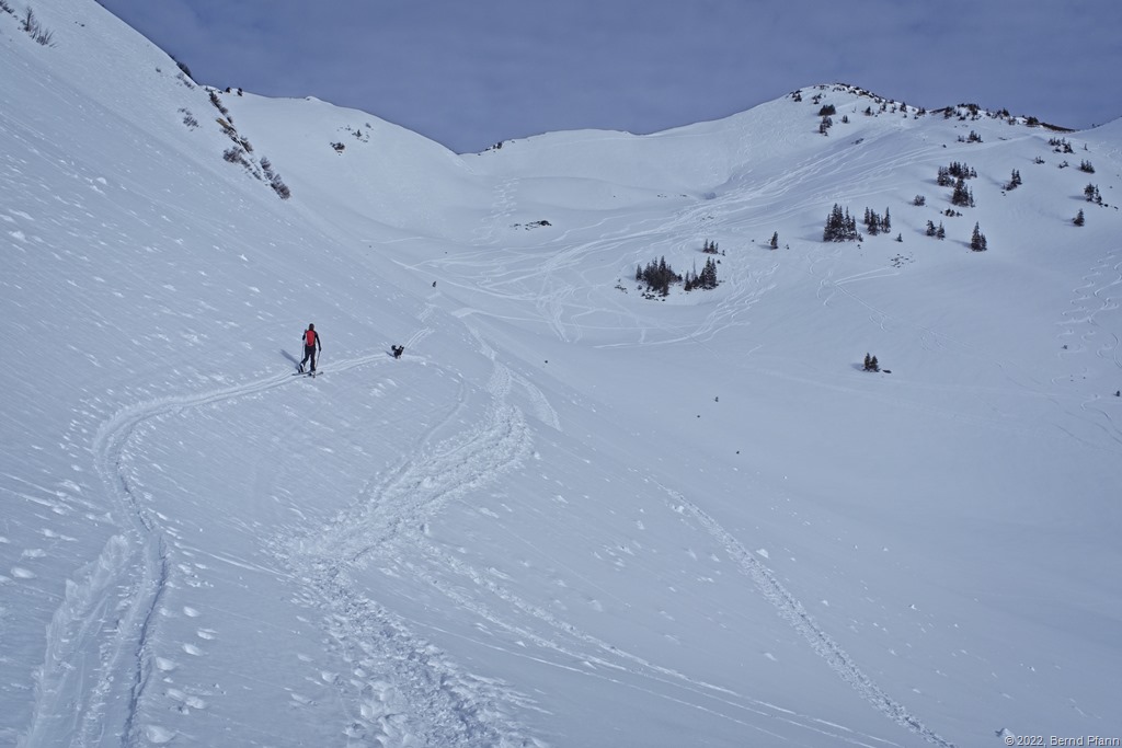 Das Bild oben zeigt die ersten 2/3 meiner Skitourengruppe beim Aufstieg auf das Steinmandl. Am Rückweg ging der Blick in Richtung des Großen Widderstein, zumindest von meiner Seite aus verbunden mit dem Wunsch diesen Winter ein weiteres Mal in die Berge zum Skitouren gehen zu können.