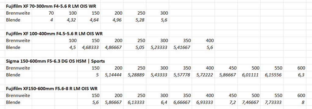 Wenn man die Lichtstärke mit der Brennweite korreliert, ist das Fujifilm XF 150-600mm F5.6-8 R LM OIS WR eindeutig die schwächste Linse.