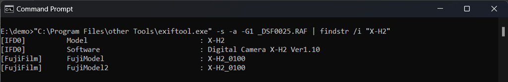 exiftool.exe -s -a -G1 _DSF0025.RAF | findstr /i "x-t5"