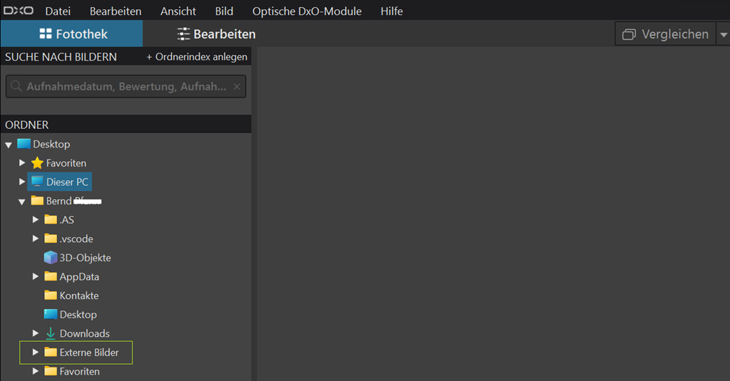 DxO PhotoLab bietet zur Navigation ebenfalls das Dateisystem in Form von Ordnern an, setzt dabei aber Kenntnisse der Strukturen auf den PC voraus.![]()