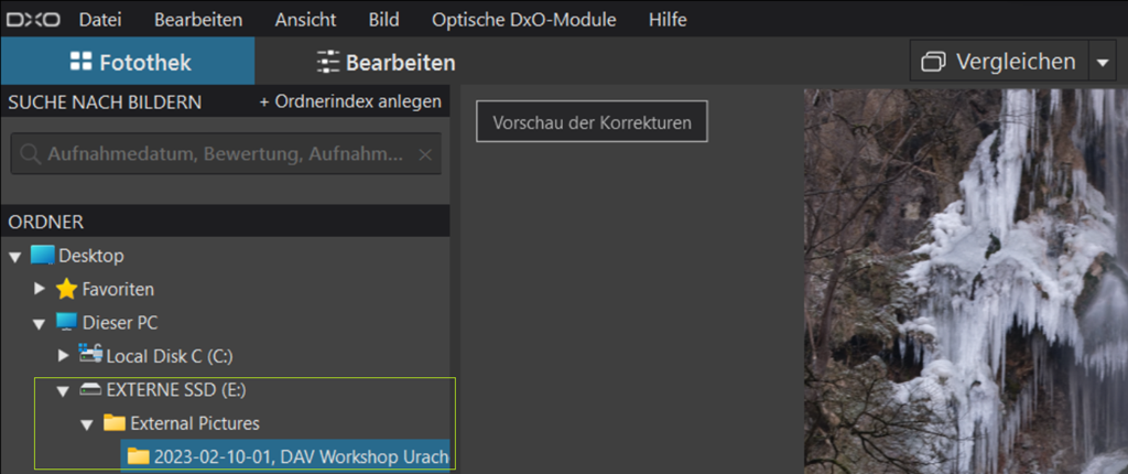 Bilder auf der externen SSD lassen sich unter dem folgenden Pfad auch in der Fotothek finden.
