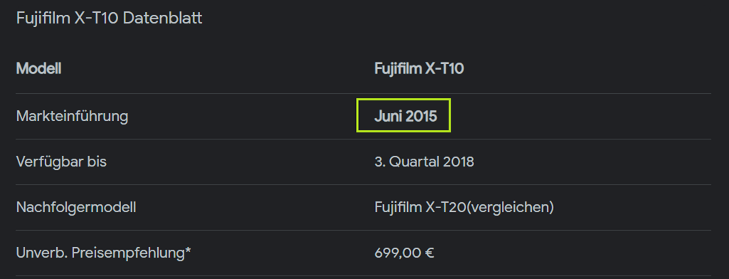 Von Tante Google nun die Information, wann die X-T10 auf dem Markt kam.
