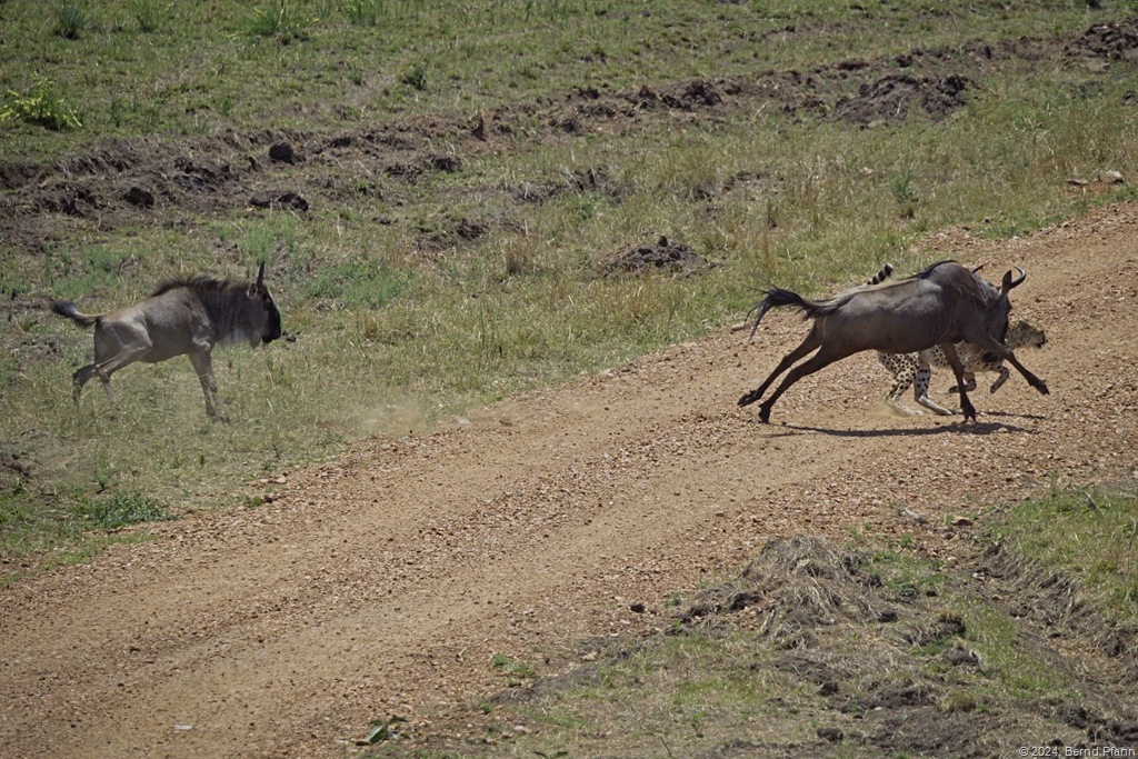 Nun könnte man sagen: “Dein Leopard da oben, der geht ja nur”, das stimmt. Aber die Mutter des kleinen Gnus auf dem folgenden Bild fand den Versuch des Geparden nicht lustig und ist ihm voll in die Parade gefahren. Da hat die X-H2 acht scharfe Bilder in Serie gemacht und so gibt es für mich keinen Grund zur Klage (über die Ver.5.00)