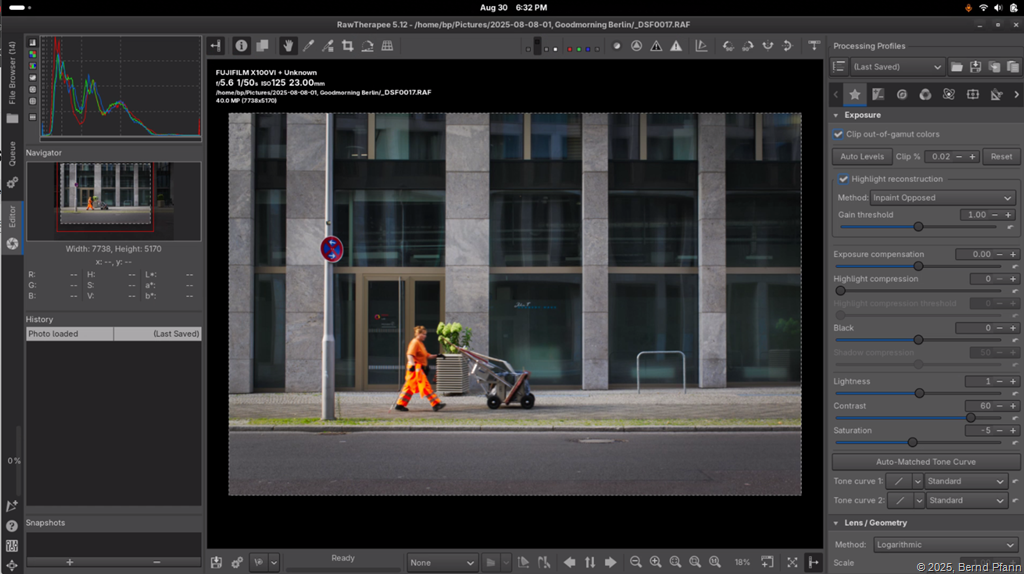 Installiert sind die drei oben erwähnten RAW-Konverter, von denen ich, historisch bedingt, RawTherapee besonders gern verwende. ART als eine Ableitung von RawTherapee versteht sich von selbst, und wenn man sich die Mühe der Einarbeitung macht, ist darktable ein Lightroom-Killer. Das wird RapidRaw vielleicht auch werden, wenn wir ihm noch Zeit geben.